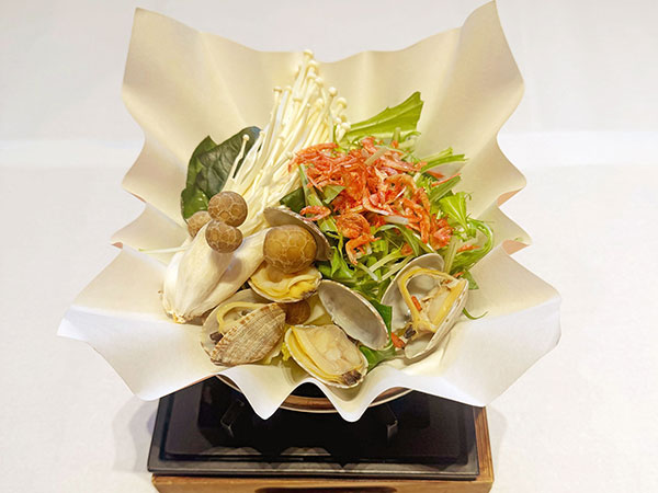 桜海老とアサリの寄せ鍋、野菜一式