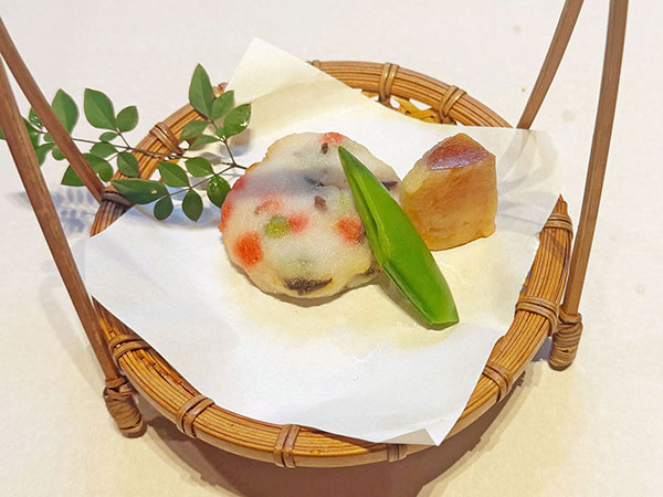 自家製ゴマ豆腐桜蒸し、